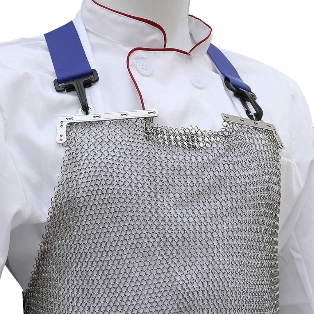 Los delantales niroflex ofrecen seguridad y funcionalidad en perfecta armonía. La correa ancha de TPU-X distribuye idealmente el peso del delantal mientras reduce el peso. Todos los delantales niroflex están hechos de 100 % malla de anillas de acero inoxidable